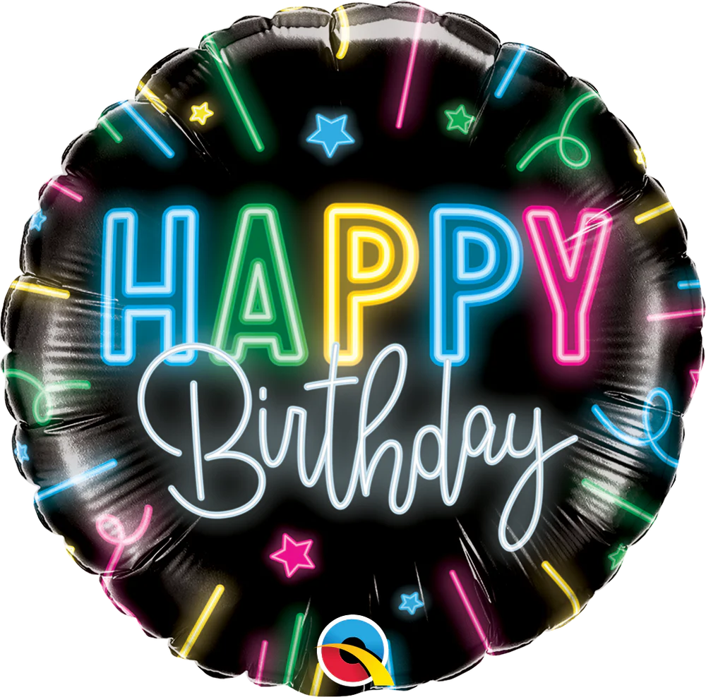 18" Happy Birthday Mylar Balloon - Neon